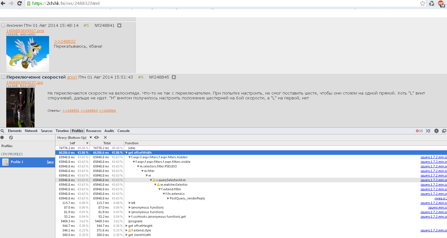 >>31512 Длинные треды открываются очень долго, значительно дольше чем было раньше. Вот этот https://2ch.hk/bi/res/248832.html - минуты две у меня на хромиуме открывался, Оперу вообще покрашил.
