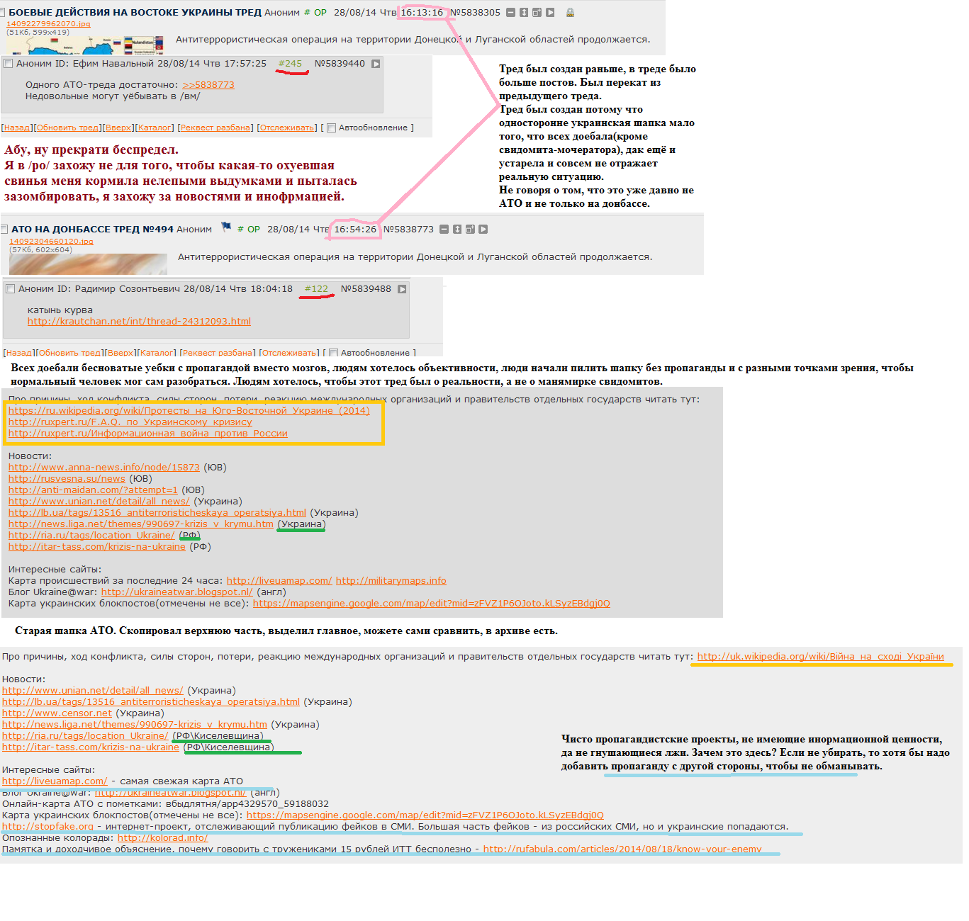 Конкретно про крымотреды, я понимаю, что многие в них сидят и заставлять их перетекать в /ukr/ до окончания АТО, как я и говорил, насильно не буду. Но если в итоге крымотреды окажутся там, то многие будут признательны. Там будет разрешена и нумерация, и вниманиефажество (по тематике), и трипфажество.