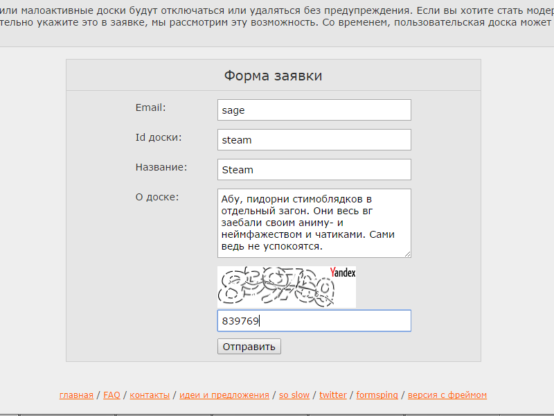 Чтобы идея взлетела, нужно убрать эту ебучую премодерацию досок со стороны администрации. Да, будет 1000 и 1 доска от школьников типа /mamuebal/, ну и что? Сделай как на восьмичане, и если там не будет достаточной активности, то доска будет автоматически стираться.