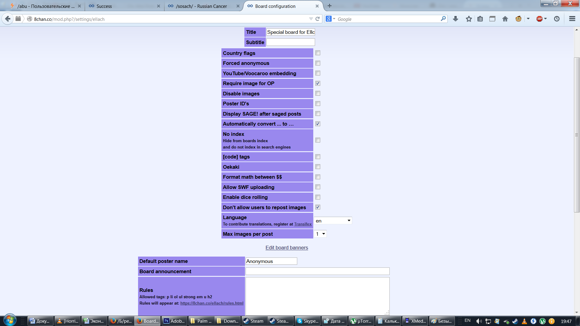 Неактивные или малоактивные доски будут отключаться или удаляться без предупреждения. Если вы хотите стать модератором доски, обязательно укажите это в заявке, мы рассмотрим эту возможность. Со временем, пользовательская доска может стать основной.