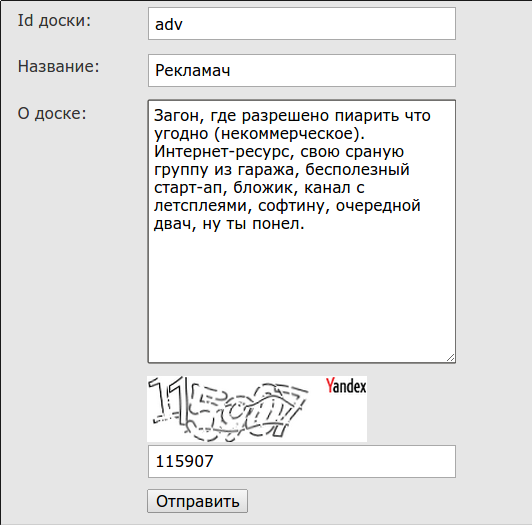 >>32897 Ну смотри, отправляешь текстач - доску без картинок. Отправляешь его раз 10. И друзей просишь. Отправляешь вреднач (самодеструктач) - доску о разрушении себя вредными продуктами (не бб, а дошираками. в едаче-то за доширы обоссут). Раз 5 отправляешь её. И друзей. Отправляешь погодач - доска, которая будет забита фоточками из окна анона, на её основе можешь потом запилить проект предсказания погоды и поставить росгидромет раком. Отправляешь обзорщикач - где будут дрочить не на обзорщиков (моча должна будет позаботится), а на обзоры всего и вся. Отправляешь игрокооперач, куда пидорнут все кооперативные игры из веге. >>32899 Ты начинаешь понимать суть.