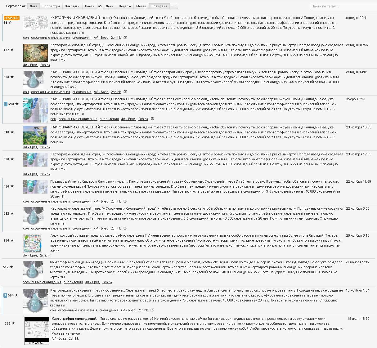 Объясню, почему. В религаче всё загажено тредами верунов и атеистов, которые спорят про свои святые писания, в магаче сидят оккультисты разлива папюса и блаватской и спорят, как им суккуба трахнуть, в паранормаче обсуждают красные занавески, в самообразоваче сидят трейдеры, математики и онлайн-курсы. На психологии обсуждают шизофрению, в философии (есть такая получкрытая доска) вообще фрики. Короче, куда ни плюнь - везде вроде тема и близка, а окружение на 90% занято какой-то херью.