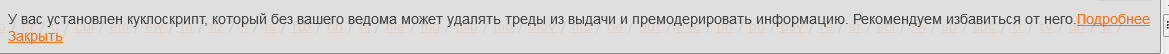 Помню, забанили в крымотреде за картинку. Да, свобода слова по порашкенски. Кому не нравится куклоскрипт, удаляйте его, нехуй запрещать анонам пользоваться им.