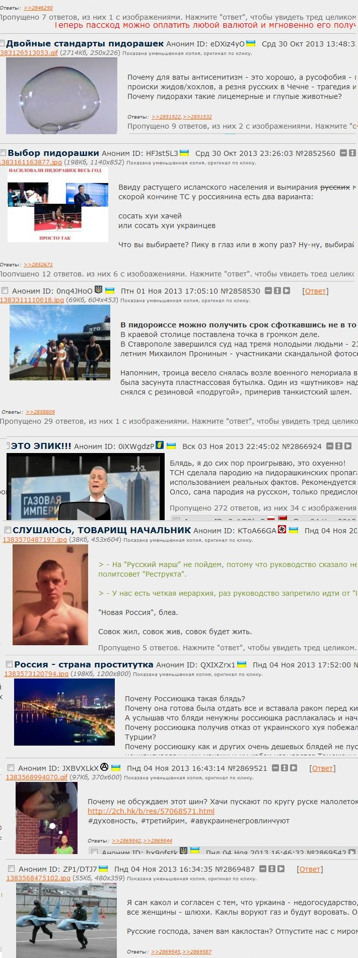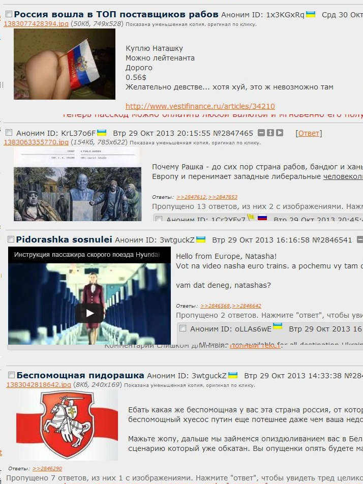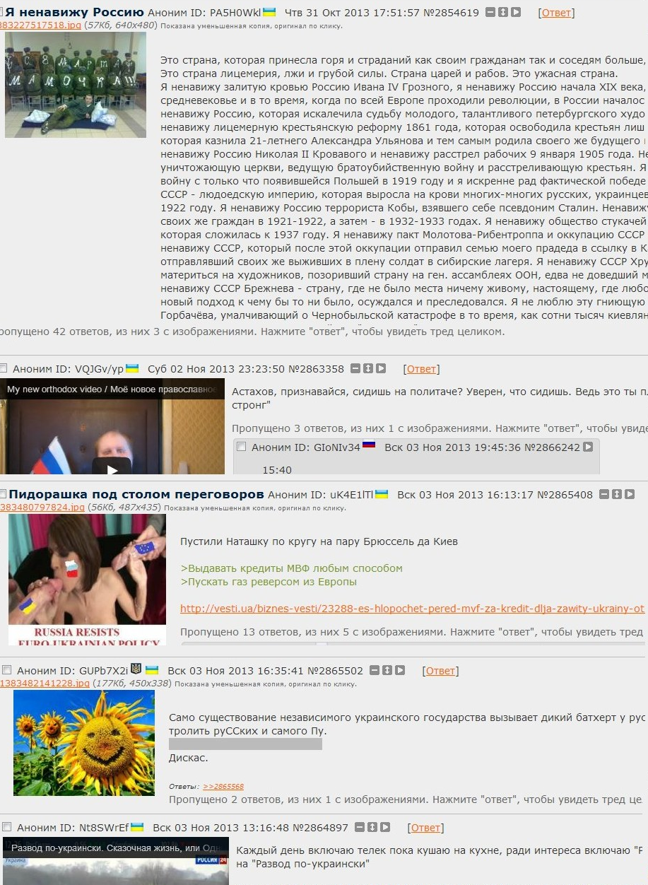 >>34344 >Так я ж ничего не пропагандирую, ольгинец Так и я ничего не пропагандирую, ольгинец. Только я не против того, чтоб и крымотреды и рашкохейтерские треды присутствовали. А против я анальной премодерации, без согласия на то анона, да ещё посредством хохла.