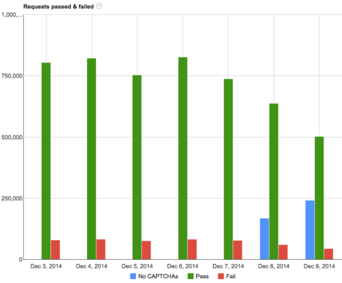 На самом деле, может быть рекапча не так плоха и стоит дать шанс? Но лично мне она не нравится, привык к цифрам. В любом случае, пока с Яндексом разберемся, заодно и потестим это. Вот пикрелейтед статистика с 4чана: более 30% запросов к рекапче не требовали ввода капчи.