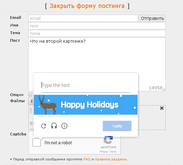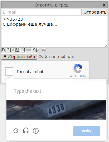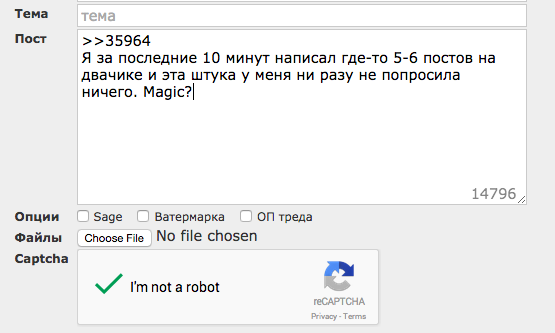 Имхо, я хоть и любитель циферок, но новая reCaptcha вообще охуенная, почти никогда не просит ничего вводить. Кстати, аноны, могу подогнать вам userscript, что делает Ctrl+Enter доступным.