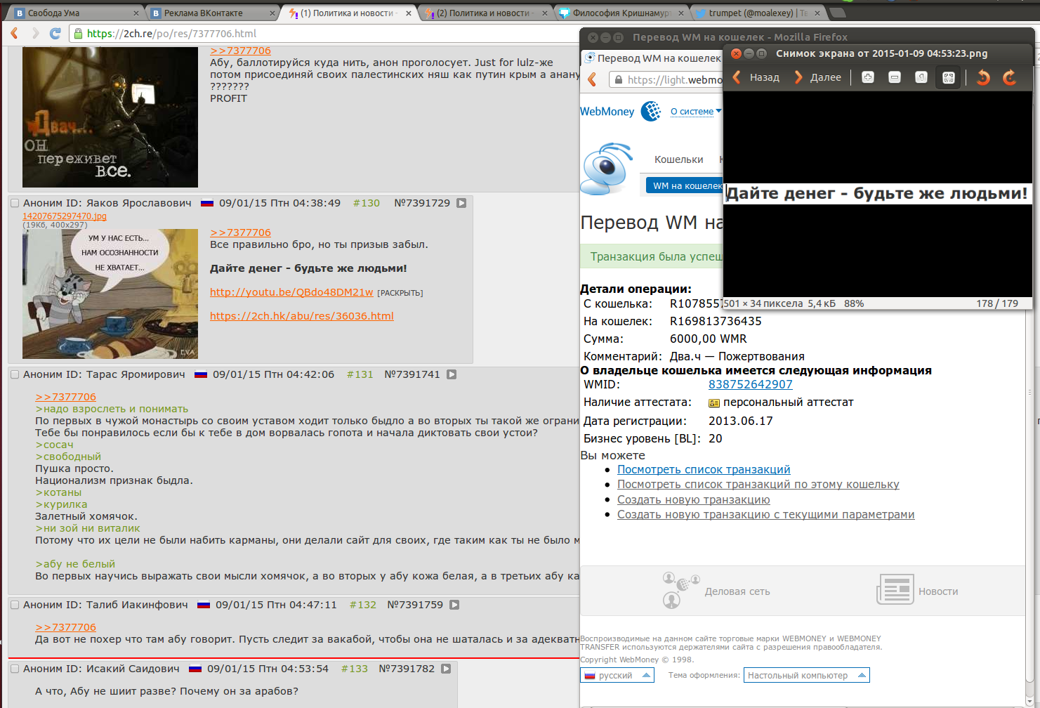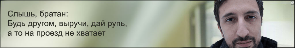 Прочёл ОП-пост, охуел от наглости Прочитал тред, понял что я охуевшее в край чмо и быдло Лови мои скромные 70, Абу. Имею только яндекс кошелёк и стим, мог бы перевести со стима, перевёл бы. Держись, дружище, крутись, сопротивляйся. На твоём месте так бы поступил любой другой здравомыслящий человек. Именно человек, ты же знаешь, тут куча недолюдей обитает.