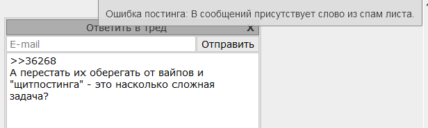 >>36036 Ну давай разберем по частям тобой написанное. Прямо сейчас захожу в /po и пишу пост "Она сама умерла", на что борда отвечает мне что-то вроде "слово из поста присутствует в спам-листе". Как ты думаешь, много у меня будет желания делать донаты или покупать пасс-коды?