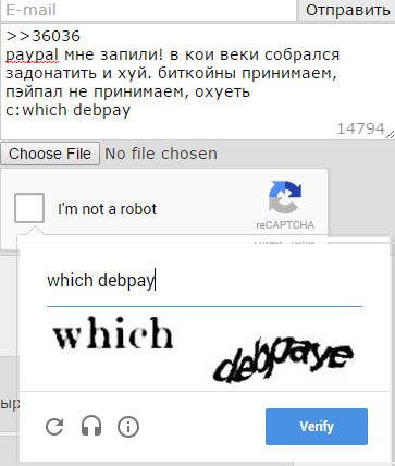 Ебанутый что ли? Нет, вот реально - ты, блядь, что просишь ? Каких на хуй денег тебе отправить? Доска работает через жопу, понимаешь? На что ты деньги просишь? Все прогрессивные Америки уже отказались от капчи и ввели автосмыв тредов., наладили код и обслуживают доску 24/7 да так, что за всё время знакомства с их имажбордами, я лишь 2 раза видел сообщение о Maintenance. А это говно что? РЕТРИВ ЛИВ ВЕРШН через каждые 5 часов работы. Пиздец, мочерня, вы совсем обнаглели. Я готов платить за комфортное общение, а не за вашу пиздорукость.