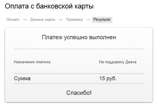 >>36036 заплатил 50р. понимаю, что всем конечно похуй, НО. в обязательном порядке нужно после оплаты редиректить на страницу с голыми девками и фразой "спасибо". иначе не торт.