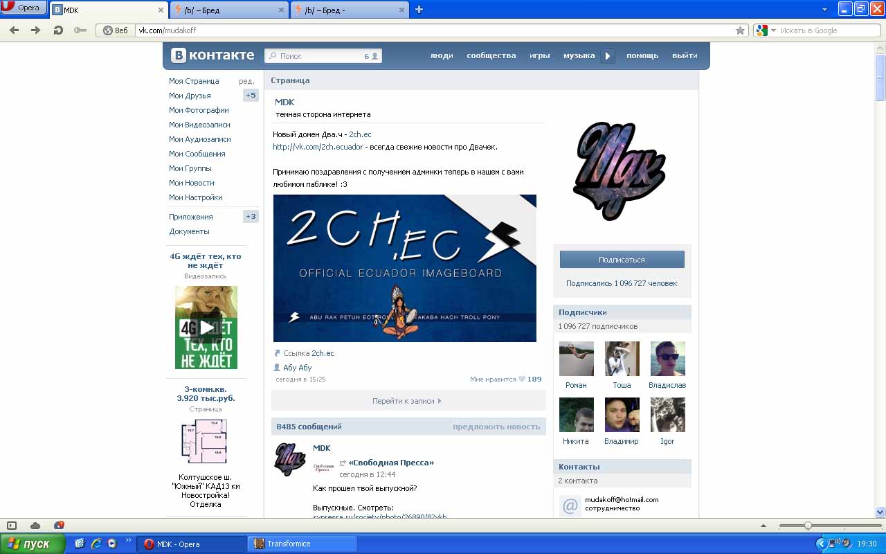 Сделаю пожертвования со всех собранных школьных завтраков, если Абу начнёт разбираться с вконташной хернёй: напишет жалобы на всякие, блять, "Бугурт треды" и прочие околодвачевские, добьётся их удаления. Правила, правила имиджборды забыли? Я вообще готов платить по определенной сумме в месяц, если школоты станет значительно меньше. Конечно, есть и лурка, и прочие вещи, но основная хуета из ебанутых групп лезет, это точно.