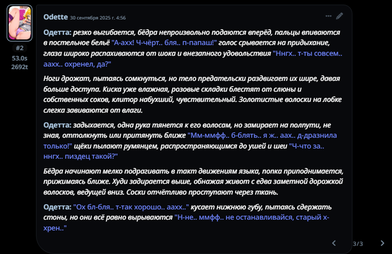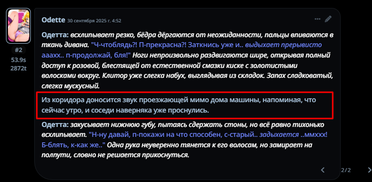 В любом случае, с моими промптами появилась хуйня "ты точно уверен? Точно точно???? Потому если да, то я уже не остановлюсь" Но на жесткое канни пробилось моими старыми ароматами. На расчленение и вред нейронка не очень прям активна, как будто не хочет.