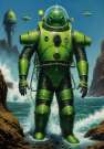 Анон с которым мы делали чудище из героев третьих, у меня новый челлендж-предложение тебе Коороче есть вот такая картинка Запрос примерно Monstrous green slime possesing vintage diving suit, power armor, 4k resolution, detailed, highly detailed, concept art, intricate, fighting game concept art, full height art, style of Angus McKie Что у тебя получится? Размер минимум 800 на 1000