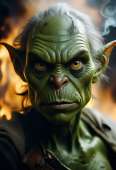 >>789601 a digital artwork inspired by fantasy genres of the styles seen in high fantasy literature and film. The character is a goblin, characterized by its pointed ears, green skin, and pronounced facial features. The creature's expression is one of intense focus or concern, with wide, deep-set eyes that convey a sense of alertness or curiosity. The background is blurred but suggests a chaotic or war-torn environment with hints of fire and smoke, which adds to the dramatic and possibly perilous atmosphere of the scene. The art style is highly detailed and realistic, with a focus on textures and lighting that bring the creature to life. The use of shadows and highlights on the creature's skin and clothing gives depth and dimension to the image. The color palette is rich and evocative, with the green of the creature's skin standing out against the darker, more muted tones of the background. The overall composition is dynamic, with the creature's gaze drawing the viewer into the scene, creating a sense of immersion and engagement. The medium appears to be digital, given the level of detail, the smooth gradients of color, and the precision of the textures. The artist has likely used advanced digital painting techniques to achieve the lifelike quality of the creature and the atmospheric depth of the background. The image could be from a concept art piece for a video game, a movie, or a book cover, given its cinematic and storybook quality.