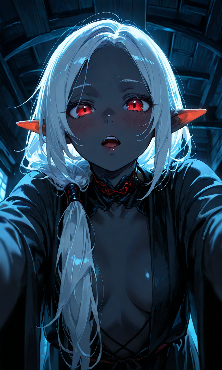 Перед кроватью стоит девушка и соблазнительно смотрит на зрителя который типа на кровати. Она голая. Потом другая картинка - такая же но девушка с рогами и хвостом. Может кожа теперь красная и глаза может другого цвета или красные. Типа демонетка заманила мужика.
