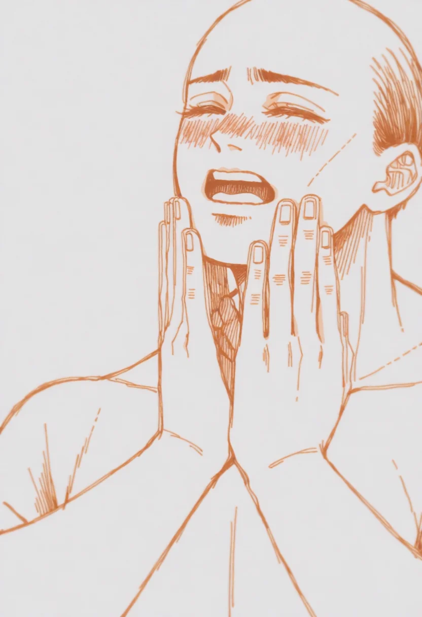 Третий кадр она шокированно смотрит на дырку в груди или животе. Видимо мужчина за кадром испугался и выстрелил из пистолета. Может пистолет даже в кадр попал. Последний кадр - демонетка что-то возмущенно или угрожающе орет. Это означает что на ранение ей пофиг, а вот чью-то голову она за такое открутит.