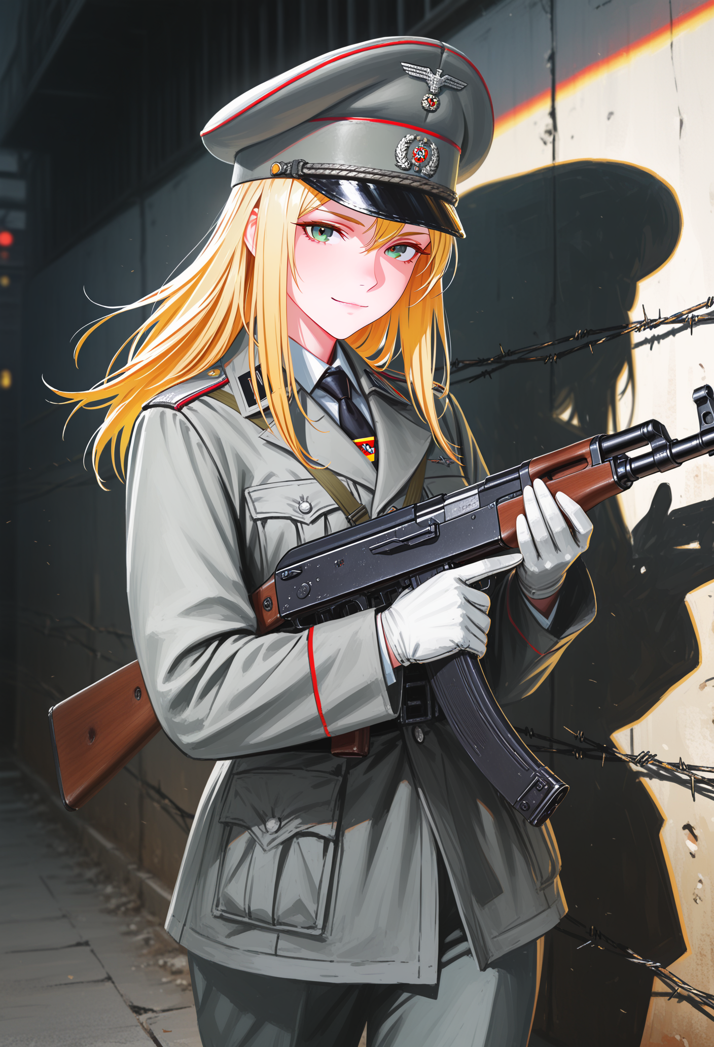 >>1183531 Я в оружие не разбираюсь но нашел тег на похожий пистолет luger p08 на данбору. Попробовал на разных моделях которые у меня есть, не одна не справилась. Рисует разные пушки какие хочет. Оно и понятно современные локальные аниме модели едва ли научились в руке оружие более менее нормально держать и рисовать. Так что думаю тут без лоры никак на данный момент. Если что у люстры второй как по мне самый похожий вариант получился первый пик
