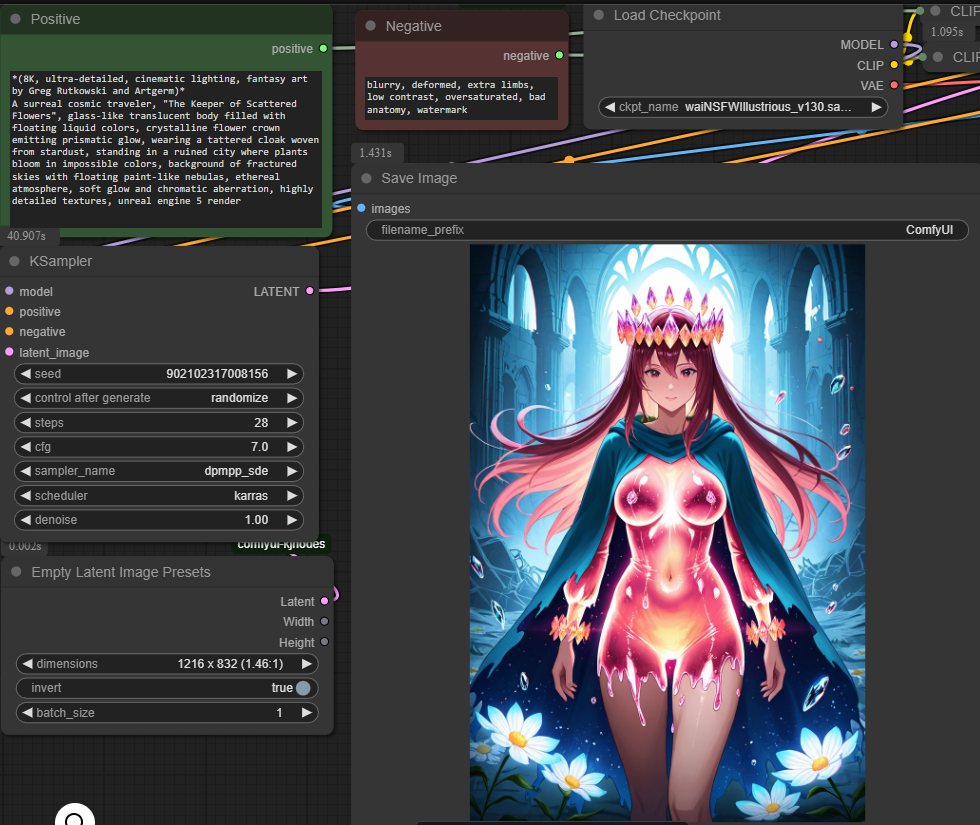 >>1182598 >Кстати ещё вопрос. А есть какие-то промпты на рандом какого-то аспекта? Ну там, цвет одежды, причёска, от же угол камеры, хз. Или можно как-то сделать, чтоб указываешь несколько вариантов сам и для генерации выбирается одно из множества? Ты можешь просто предоставить максимальную свободу действий модели тегами типа dynamic pose, тогда она тебе будет рандомить позы и рожи так, как ты сам бы не додумался. Также некоторые аноны использовали нейросети внутри воркфлоу для генерации промпта.