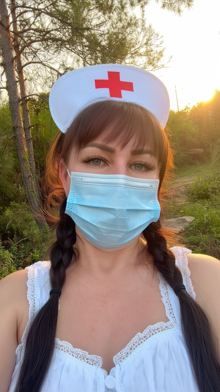 Hair: Historia’s signature platinum-blonde waves, styled half-up with braids intertwined, resembling traditional Germanic hairstyles. Makeup: Soft, natural tones with flushed cheeks and a faint rosy lip—enhancing her "girl-next-door" charm while maintaining elegance. 4. Background & Lighting:
