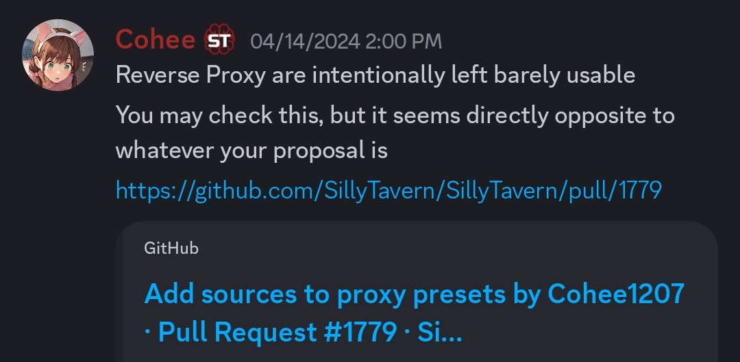 >>1252173 >иметь проблемы с языками в 1+1+1+1+1+1 году от изобретения GPT-2 Зачем тебе гайды, просто пишешь джейсон и закидываешь в него данные о персе. >В китайском дрискорде Напомню что китайцы и ктулху-промпты хавают (не удивлюсь если и поклоняются). Так что не советую слепо следовать.