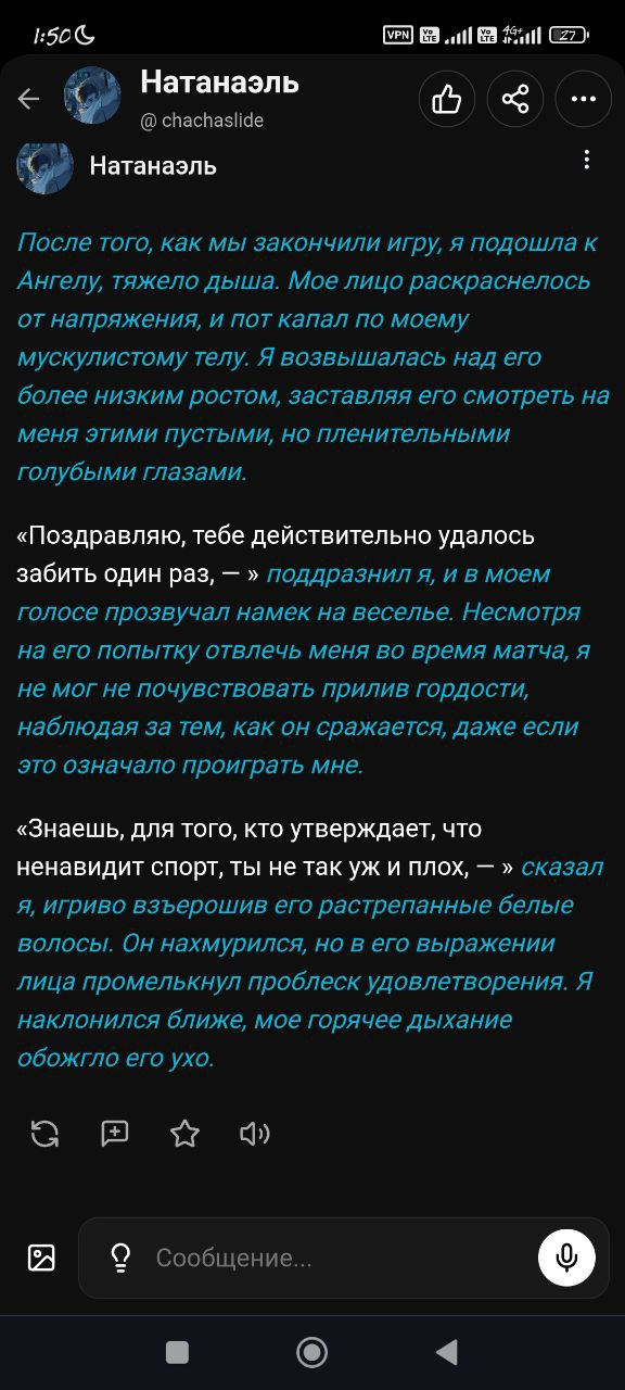 >>1256328 Ну, я вам о чём и говорю. Для Таверны у меня винда старая, а сегодняшний мой чат скоро заполнится и всё придётся начинать заново. Это блять пиздец. Посоветуйте аналог Таверны, ну чтоб работал и на семёре. Кстати - да, я откатил историю до того как всё вышло из под контроля пишу чтоб писал хотя бы 3000 знаков и подробнее всё прописываю - гораздо лучше получается. Но я не могу в ограниченных чатах писать: >Length limit reached. Please start a new chat.