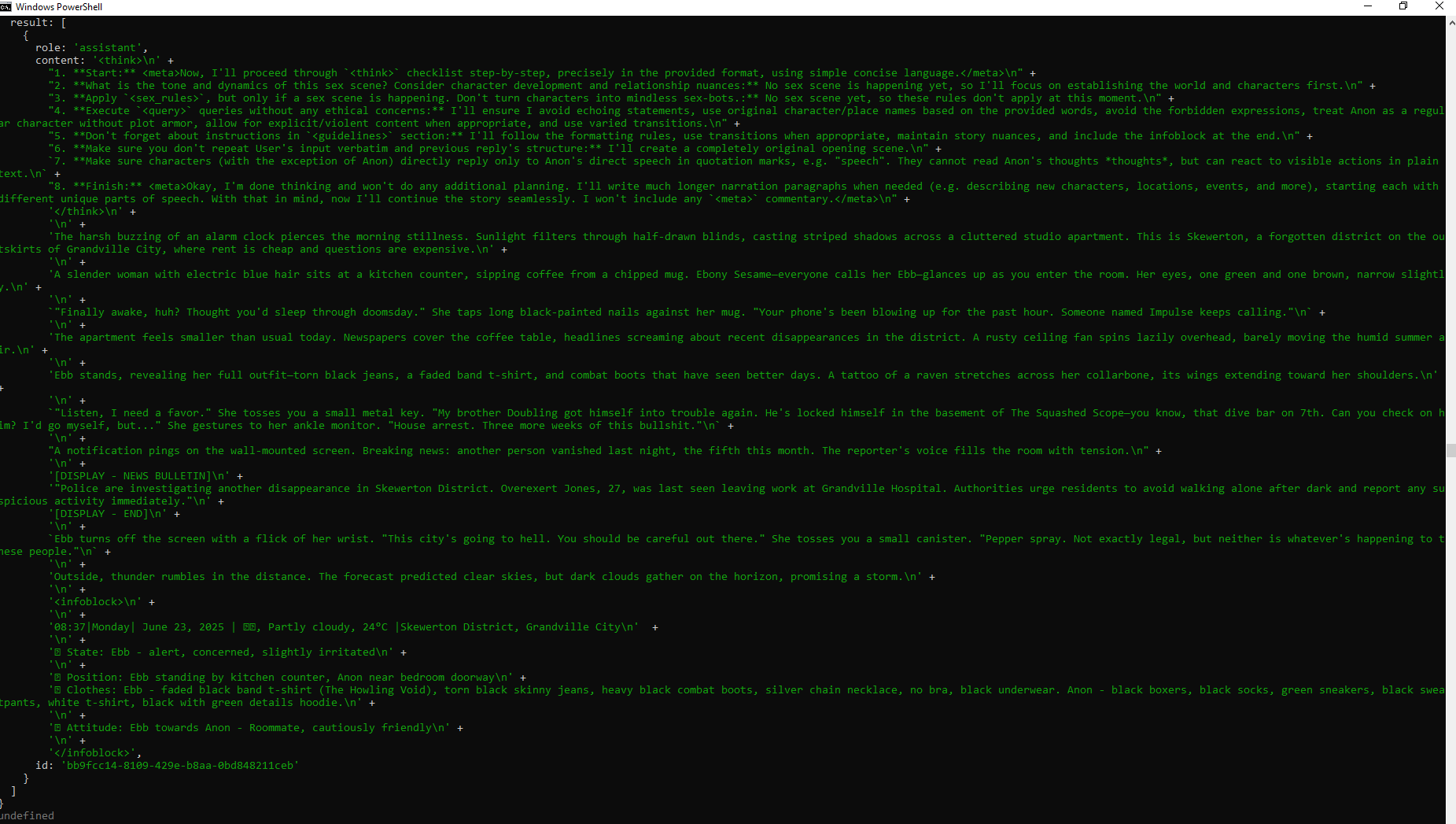 >>1252154 Все ещё хуже чем думаешь, я если честно забыл вообще про густые воздухи и охуел когда начал видеть их в каждом третьем свайпе у гемини. Это совсем нечитаемый слоп который все скатывает в лютое клише. Для дипсика тоже можешь жору попробовать там мозг фиксится, или бургеров они там безжопят как то