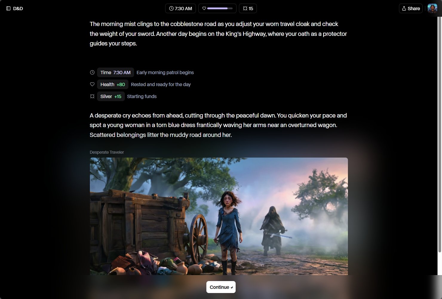 Эта карточка содержит три гритинга: 1) Начало. Вы просыпаетесь в цветочном поле рядом с Марией и после небольшого обсуждения ситуации она предлагает вам начать с ближайшей деревни или замка. 2) Вы и Мария остановились в гостинице при таверне и на утро после ночи она намекает вам что нужно привести себя в порядок и искупаться и она сможет вам в этом помочь. 3) Вы и Мария продолжаете ваше путешествие. На этот раз вы с ней направляетесь к границе, чтобы посетить новые земли. Путешествие в телеге и девушка-попутчица тоже присутствуют.