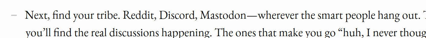>>1254216 Какие сайты? Все в телеги, ватсаппы и соцсети давно переползли, а те анально ограничивают копирование с них, поэтому все на реддит со стакофервлов и набросились так, последние бастионы олдстайловых текстов, со всеми возможностями читать. Сайты в начале 2000х актуальны были.