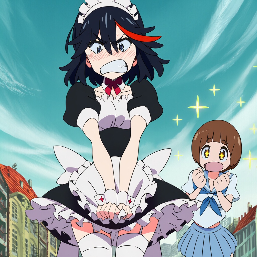 >>1249050 Я сейчас впервые в жизни инпеинтил на сдхл, на авось вместо емпти латент ноду инпейнта кинул. Чекпоинт знает этих персов, далее апскейл х1.5 с 0.15 денойсом. В промпте esdeath\(akame ga kill\), tatsumi\(akame ga kill\), anime screencap и далее теги из вд14