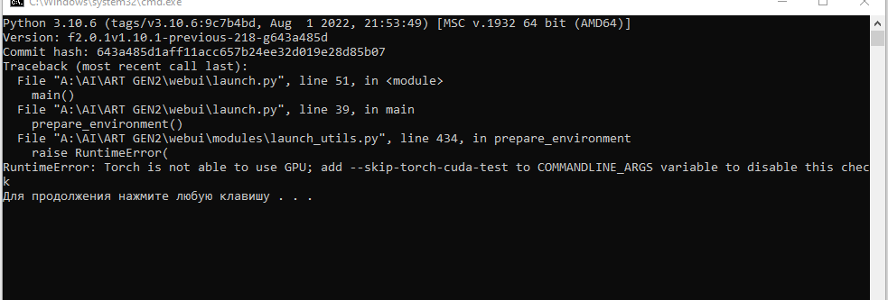 >>1253513 Да находил это решение еще на гитхабе их. Как я понял (а я ламер пиздец) на свежей установке форжа не успевает создаться venv до того как run.bat высрет ошибку. Но ок спасибо за совет попробую.