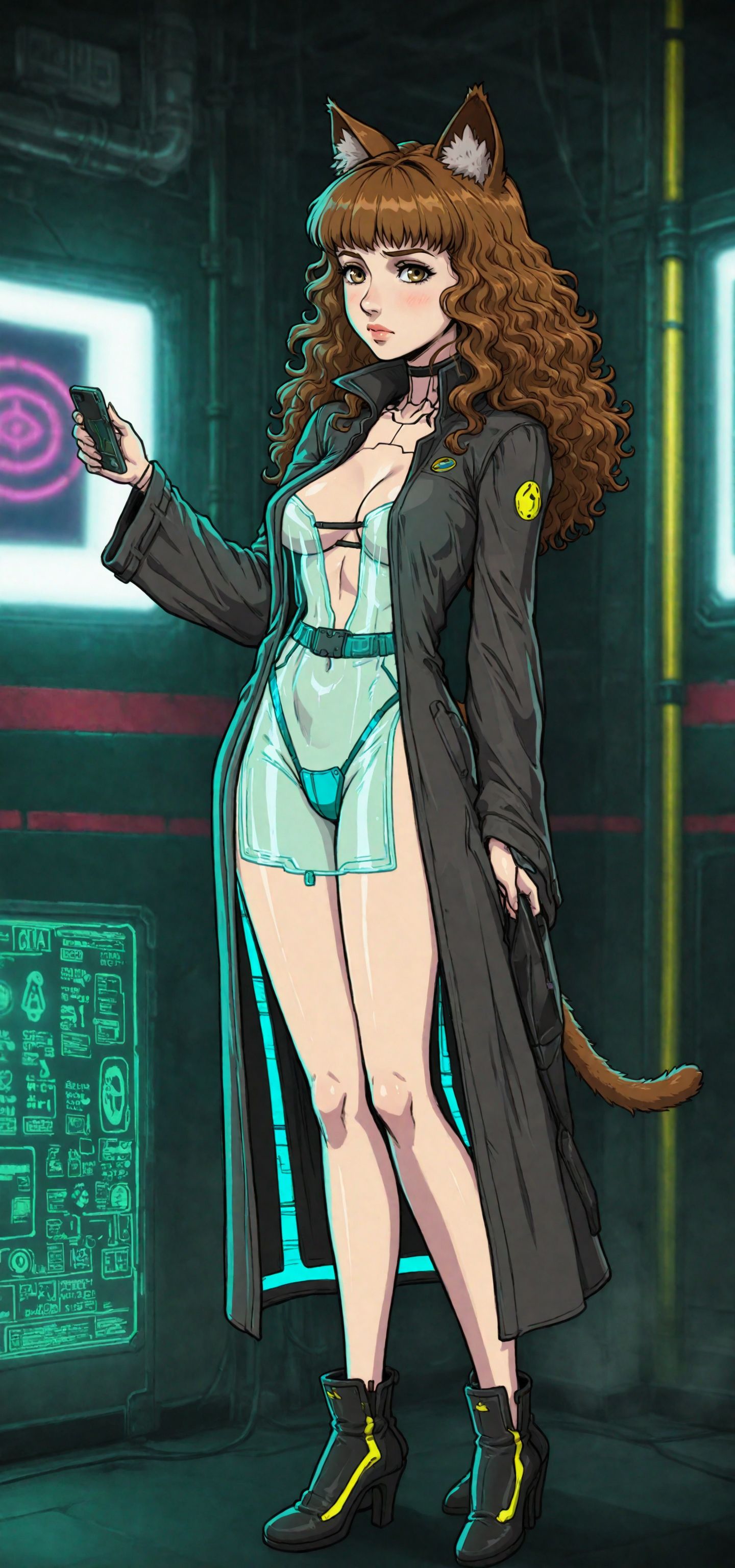 Пик2. Попробуйте теги transparent plastic coat, transparent plastic clothes, see-through clothes, Очень тематично для киберпанка.