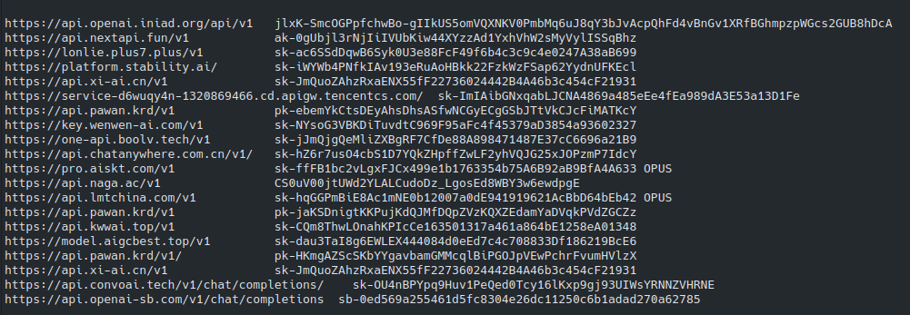 >>1256606 У меня тоже такие есть. Не представляют особой цености, т.к быстро ревокают, если на инглише приходят промпты на эндпойнт, который зачастую логируется Это по сути адрес и токен к китайским проксе. Их как говна на гитхабе и обнимеморде. Ценность представляют разве что прокси на которых может быть эрни