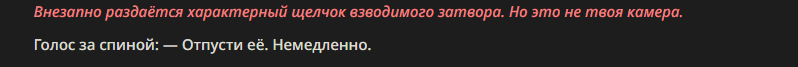 >Внезапно в зале аэропорта раздался громкий женский крик, за которым последовали хлопки, похожие на выстрелы. Люди в панике начали кричать и разбегаться, падая на пол, прячась за стойками и сиденьями. Несколько мужчин в черных масках и с автоматами ворвались в зал вылета. Они говорили на турецком, выкрикивая приказы и стреляя по персоналу.