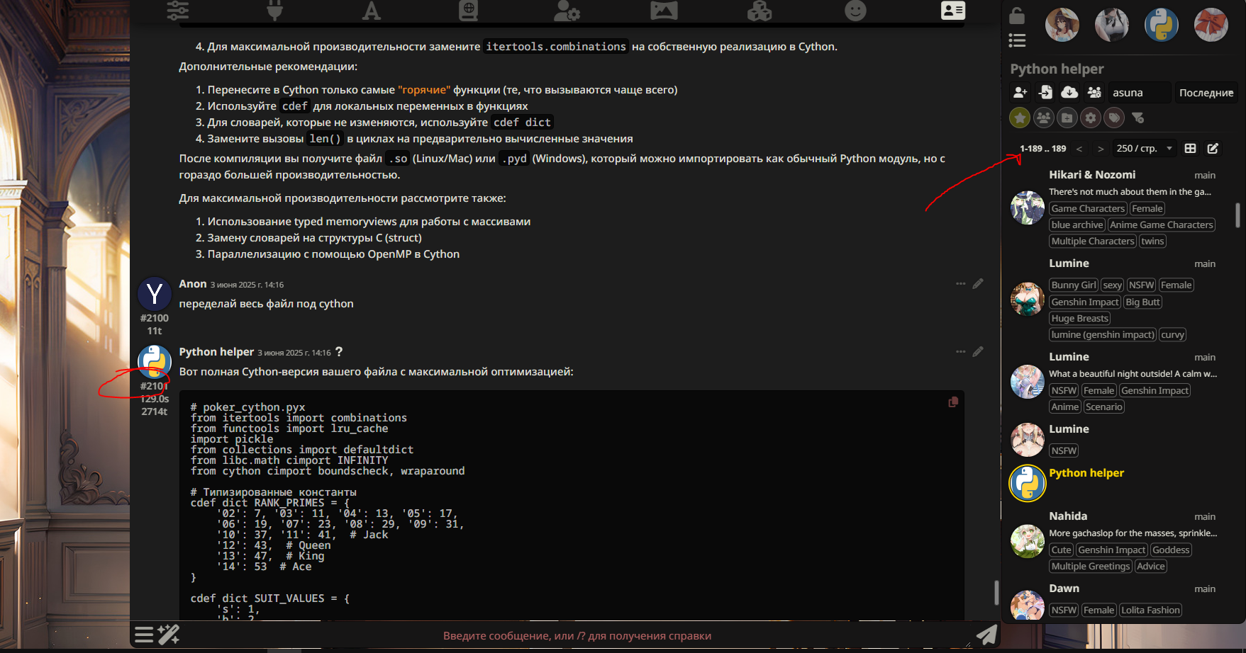 >>1259260 В треде сижу рид онли в основном. Перестал ботов делать потому что вдохновения нет, плюс окончательно желание добивает то, что чуб помер. Мои последние боты набрали 5-10 скачиваний, в треде тоже реакции нет. В пустоту не очень мотивирует что-то делать и выкладывать, потому что у меня все боты большие и создание занимает несколько дней. Так что просто рпшу себе на дипсике и всё.