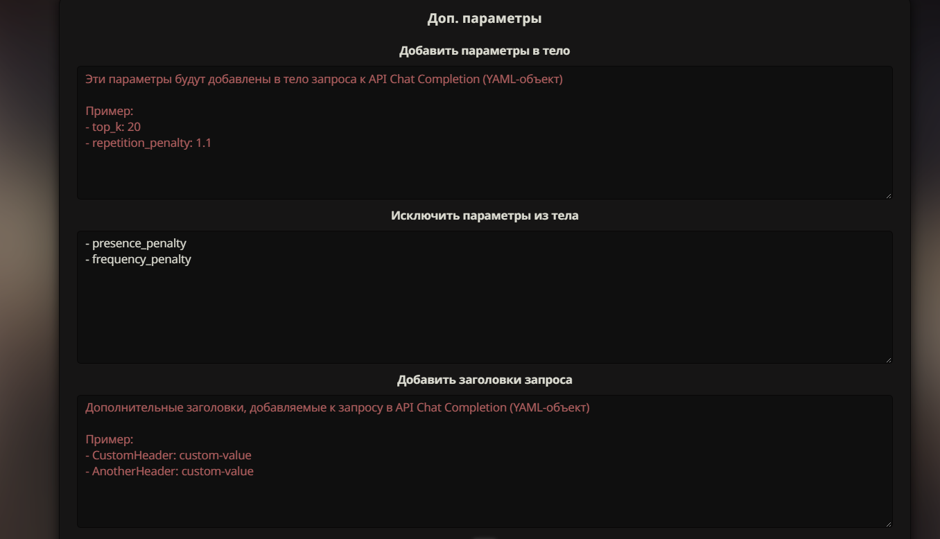 >>1256556 Нет, зачем? Примеры это не дефы, просто туда их стоит засунуть чтобы лобомит понял к кому они относятся. Подумай как у тебя финальный контекст будет сформатирован, например ><чар>такой-то такой-то</чар> ><персона>такая-то такая-то</персона> ><примеры речи>бла-бла</примеры речи> Примеры чьей речи даны выше? Лоботомит по смыслу-то поймёт наверно, но зачем ему лишний раз усложнять работу.