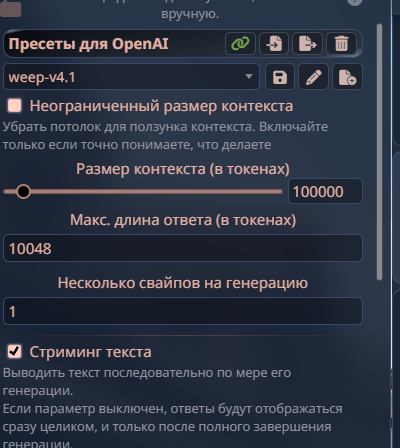 Скриптовичок, можно тебя попросить сделать расширение для вставки использованных для генерации свайпа параметров в то же поле где сохраняется имя модели? Юзкейс: удобнее отслеживать при каких параметрах менее слоповый слог для каждой модели (например дефолт у куклода блевотный до ~0.8) и на какой температуре модель начинает просирать детали лора.