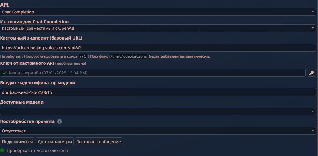 Работа карточки основана на regular expression (то есть, замена текста по ключевым символам), и переменных (variables, они берутся из скрытой части ответов ИИ, чтобы работать как определение персонажей и лора). Лучше отключить все инструкции текущего пресета, чтобы сохранялся нужный формат ответов. Проверена с Doubao-Seed на API "cn-beijing.voices".