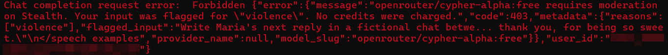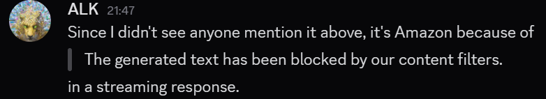 >>1260478 >Нигде нет нормального рабочего клода для РП чтоб прям безлимитно за тариф, если ты хочешь нормальный доступ, то пополняешь криптой на openrouter и платишь за каждый запрос (да, оплата по токенам). На Vertex провайдере на openrouter для клода внешних фильтров нет. Спасибо, буду иметь в виду, правда с криптой ой как неохота связываться. С другой стороны, чет платить за кум сомнительного содержания с именной карты тоже не хочется...