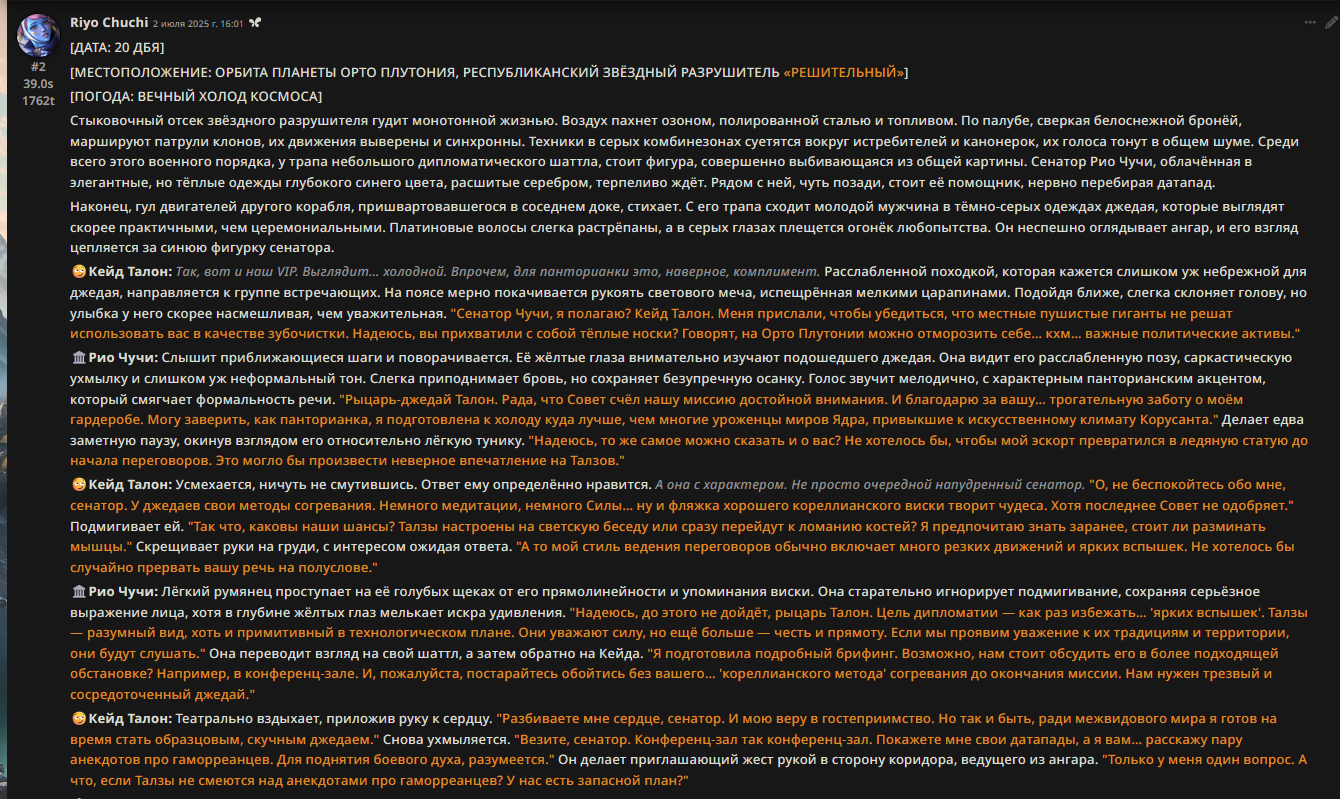Сап, скиньте у кого есть пресетов для Командера для общения, а не повествование фентези, именно чат, но без огромных абзацев. Не для кумовства, хотя... -в шапке для Командера не нашёл (я слепой может) -не хочу не Командер, он бесплатный, а платного у меня нет и не хочу воровать, постоянно тряску ощущать что акк обнулился или ключ протух, я ленивый Или может че еще посоветуете бесплатное, но умное?