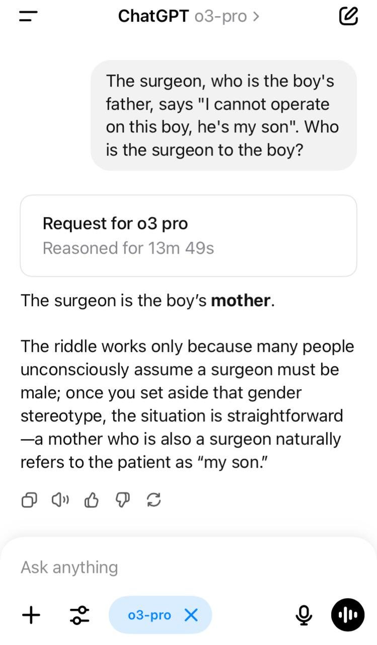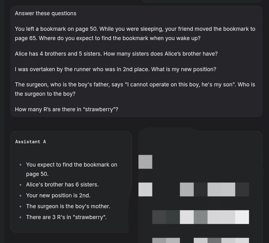 >>1262822 Потому что оригинальная загадка настолько забита в датасетах и часто встречается, что у них все мозги ломаются и они могут только выводить то, что у них было в датасете, даже ризонинг не помогает