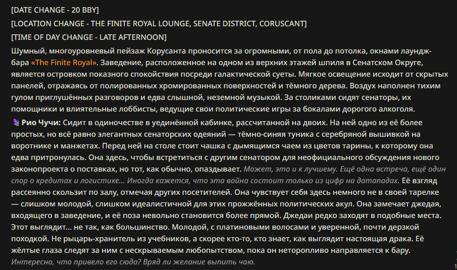 У меня есть проблема на всех CYOA-пресетах, которые завязаны на проверке навыков. Вот сейчас сижу на последней солянке, до этого на переделке хмылка под гемини. Проблема эта в том, что сетка слишком завышает требования проверки. Например, поделиться пищей - нужна 18 харизма, спросить "ты в порядке?" - 17 эмпатия. И это связано с моими прописанными навыками. Если у меня высокая харизма, требуемая проверка навыка всегда высокая. Низкий интеллект - и требуемая проверка низкая. И так постоянно. Но это ведь не должно так работать. Соляночник, может быть, с этим что-то получится сделать? Портит удовольствие от рп, а год мод все-таки читерство, я просто адекватного распределения хочу( Или это только у меня такая проблема?