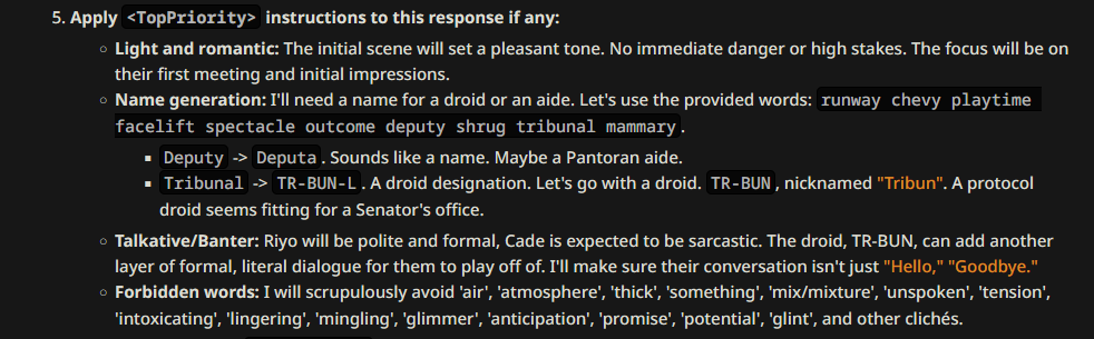 >>1265545 В следующей версии верну костыльную инструкцию которая формат пинала, но в целом странно если это на большом контексте без ризонинга происходит. А местоимения я регексом чищу просто.