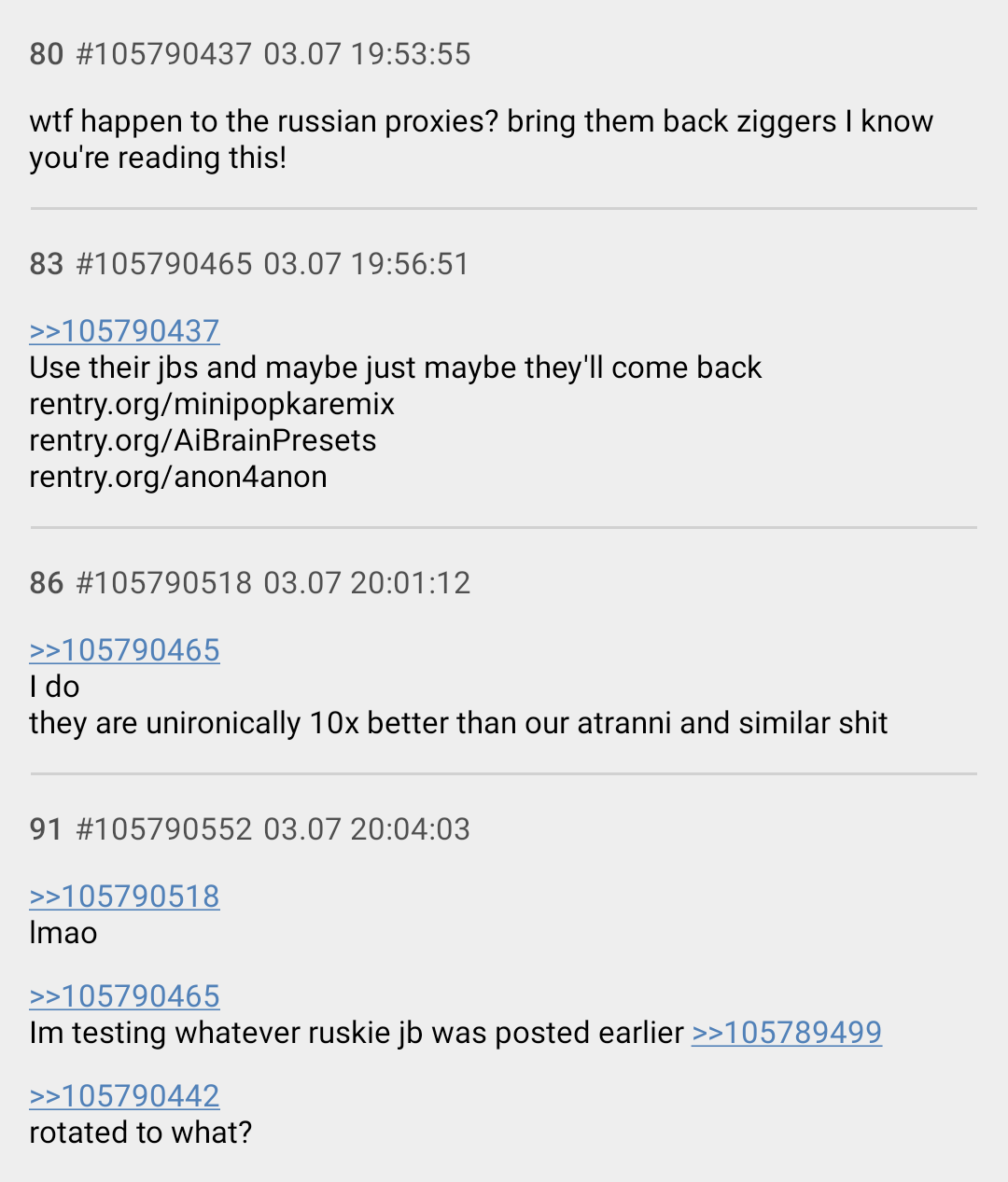 >>1265604 Зато гпт 4.5 всю свою короткую жизнь стабильно работала на их прокси, такую сетку невозможно было бы так долго продержать на открытых прокси.