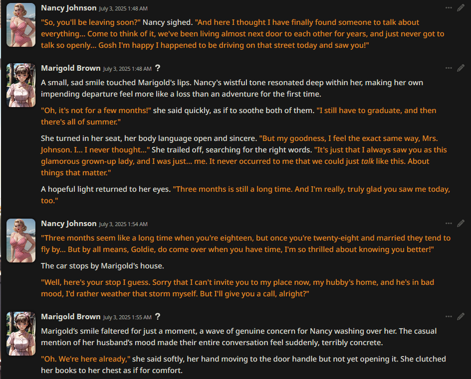 Заметил такую вещь за doubao, на карточке-сценарии она медленно переводит любой кумерский "хентай"-сюжет в романтику. Причем, персонаж для романсинга всегда оче ревнивый, собственнический (possessive), а ИИ навязывает его всеми способами, намеренно добавляя разочаровывающие недостатки каждому альтернативному персонажу... В моем случае (fempov на хентай-карточке) ИИ пытается подстраиваться, предлагая и держа на виду варианты "более подходящего" парня для ГГ, но только если "убить" слишком навязчивого или поругаться с ним. А до этого он придет в любой сцене, уведет персону за руку, а конкуренту разобъет ебало за то что грубо с ней обращался (или просто прикасался к ней).