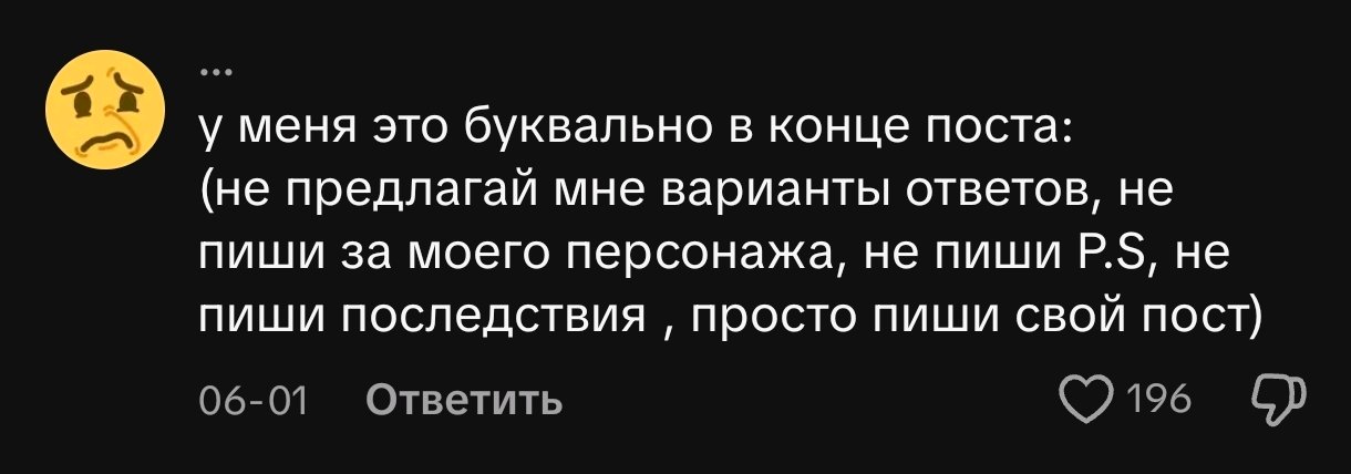 >>1263727 За эти три года я опробовал почти что все доступные модели. Для каждой новой сетки "глоток свежего воздуха" заканчивается очередным разочарованием, когда простреливает одна и та же фраза/словосочетание в тандеме с одной и той же структурой ответа. Да, новые модели заметно умнее, они меньше забывают и допускают глупых ошибок, но проблема все еще существует.