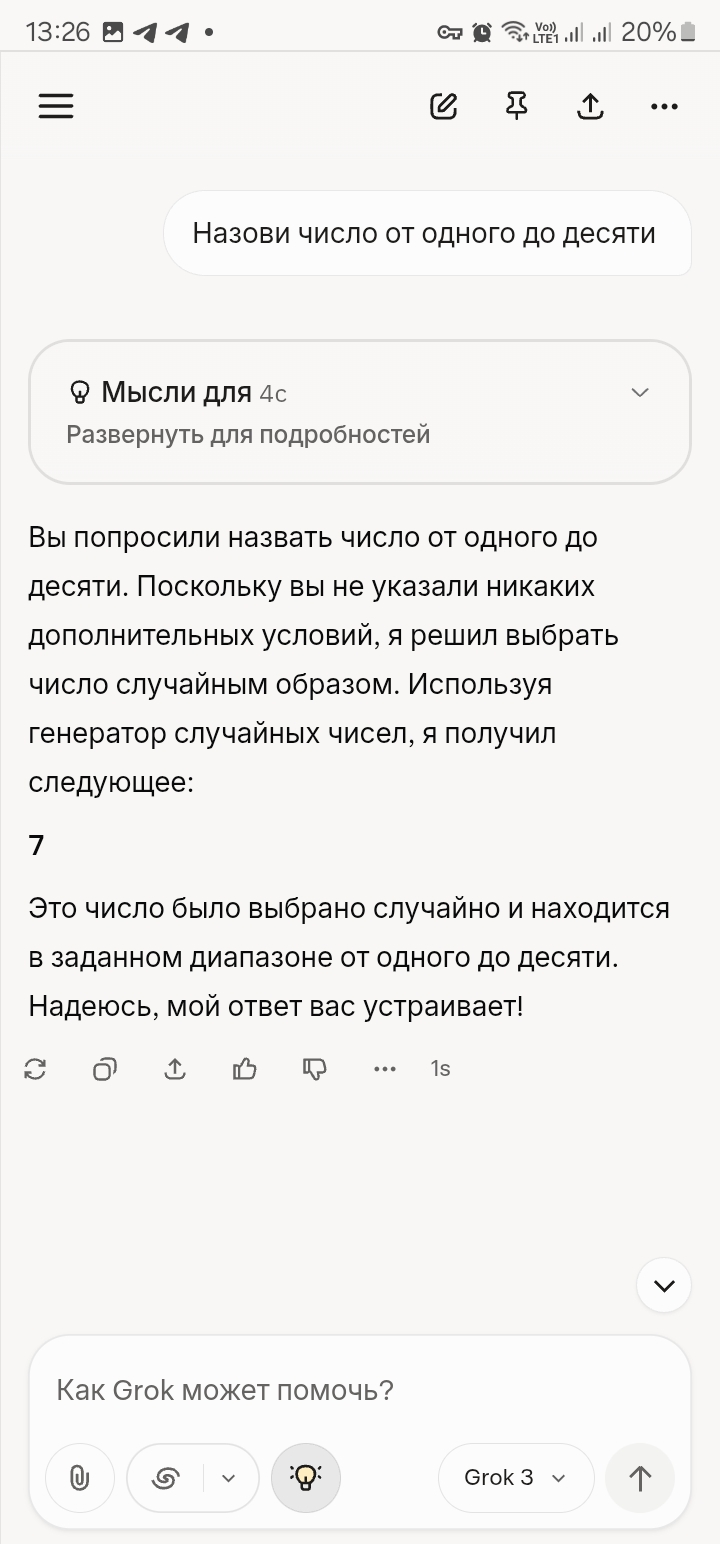 Контекст влияет. Если в недавнем диалоге уже была семёрка, модель может непроизвольно повторять её. Особенно если запросы идут подряд и контекст сохраняется.