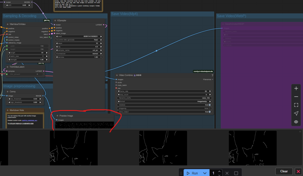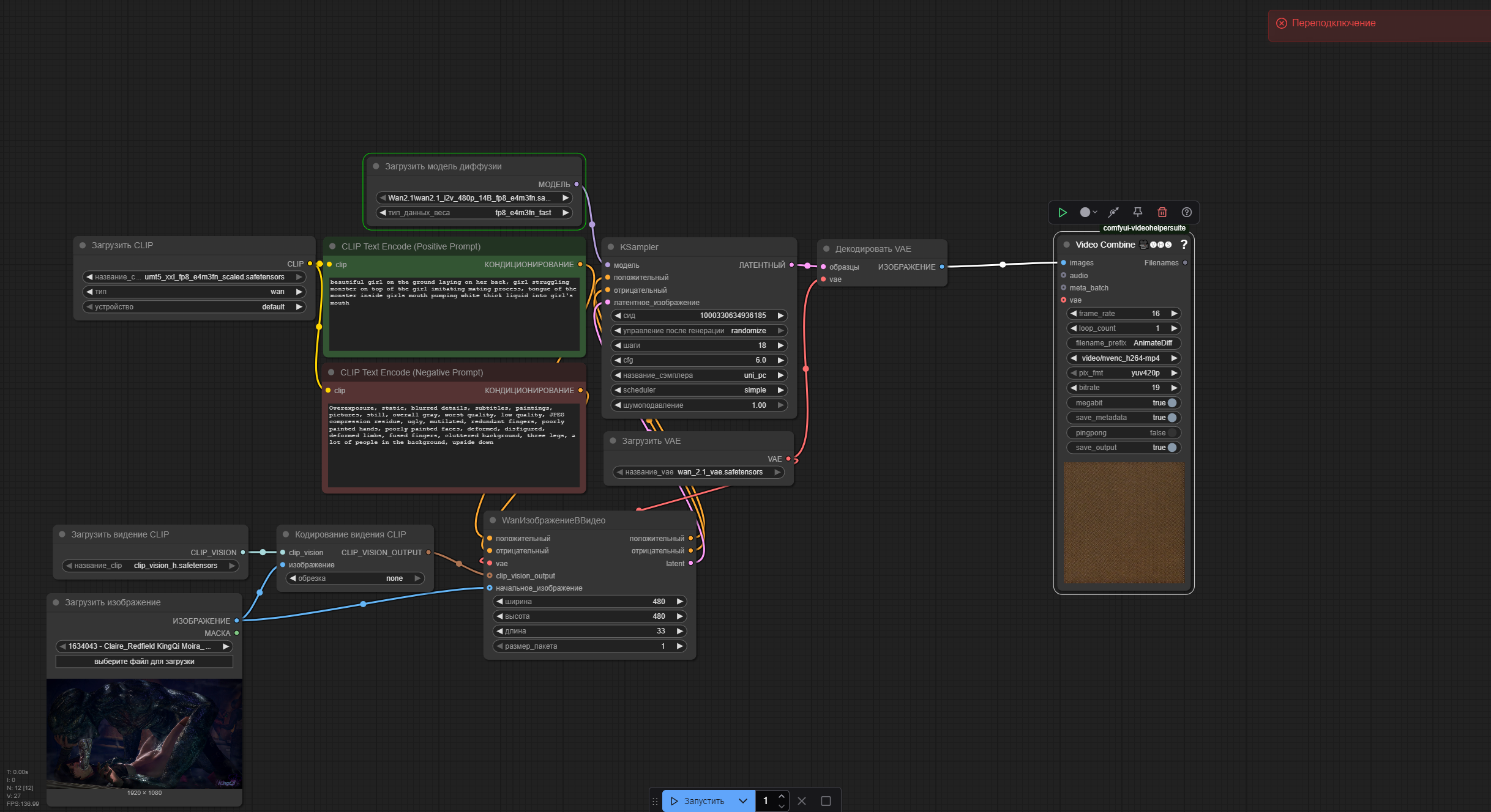 Попробовал по первому воркфлоу сделать видос. У меня получилось видео будто снято на камеру с плохо ловящего канал телевизора. То, что там сперма есть даже разглядеть невозможно. Попробовал поднять шаги сэмплера и сам сэмплер поменять, но похоже что дело не в этом. Куда копать?