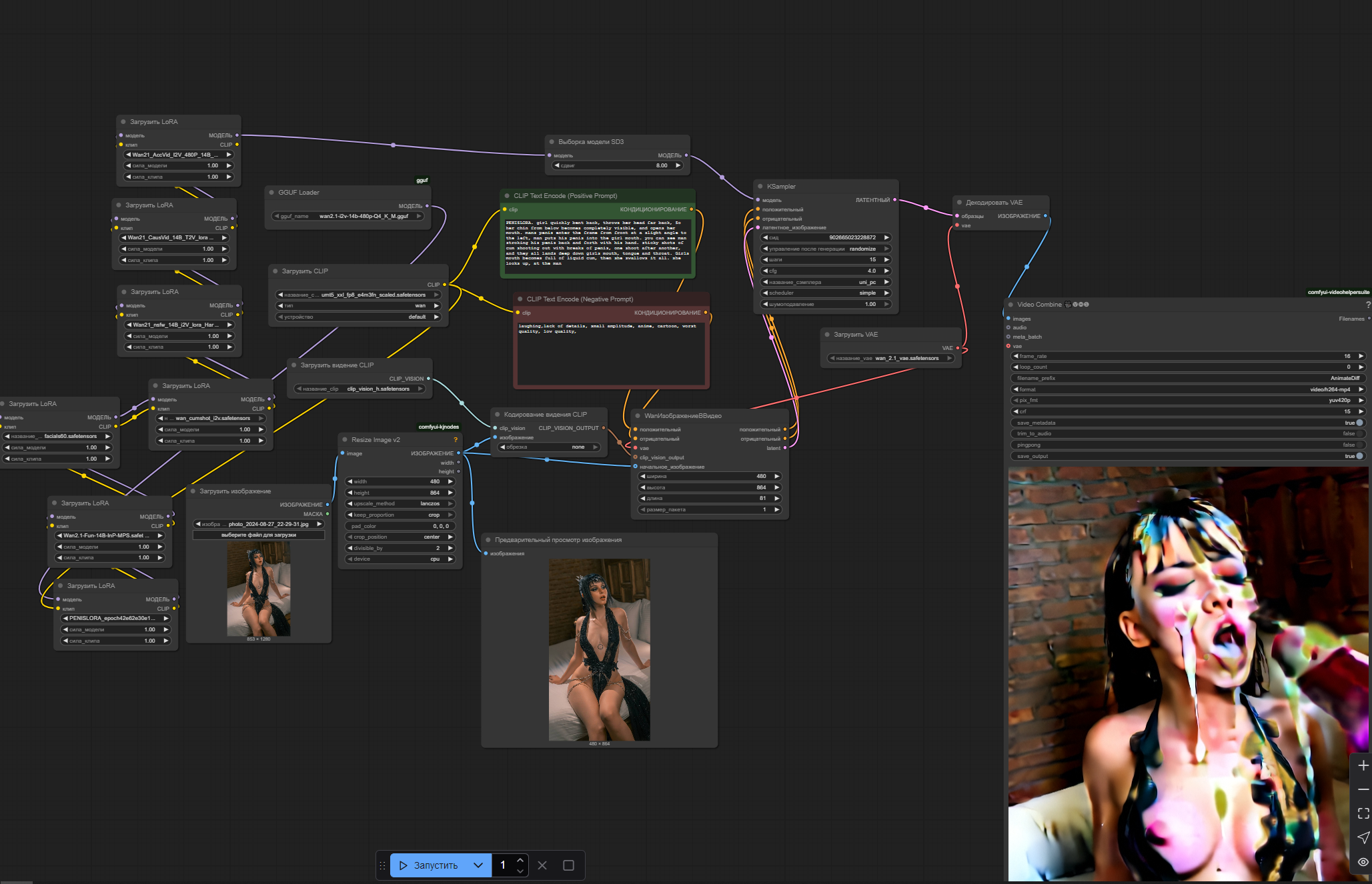 Там и тикэш, флоренс, интерполяция, предпросмотр, сохранение последнего фрейма, апскейлер. Две версии воркфлоу для ггуф и обычной версии вана.