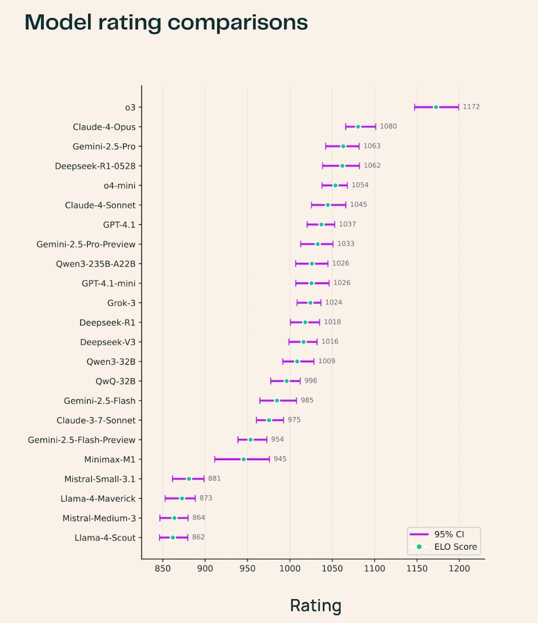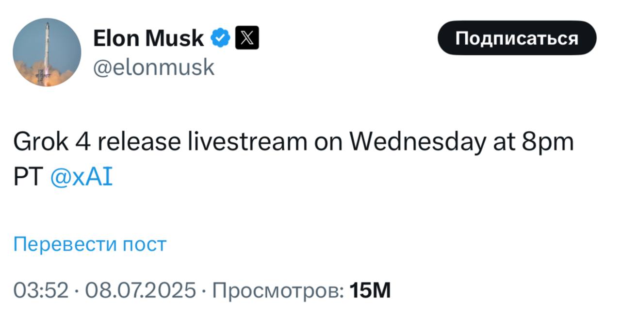 Твиттер негодует, Илон опять наобещал, но все не выпускает свою новую модель. Хотя первые бенчи слили. По ним конечно Grok 4 лучше всех. В последнем экзамене человечества (HLE) так вообще он набрал в стандартном режиме ≈ 35%, а в ризонинге ≈ 45%. Для сравнения, Gemini 2.5 Pro и o3 там по 20% только подняли.