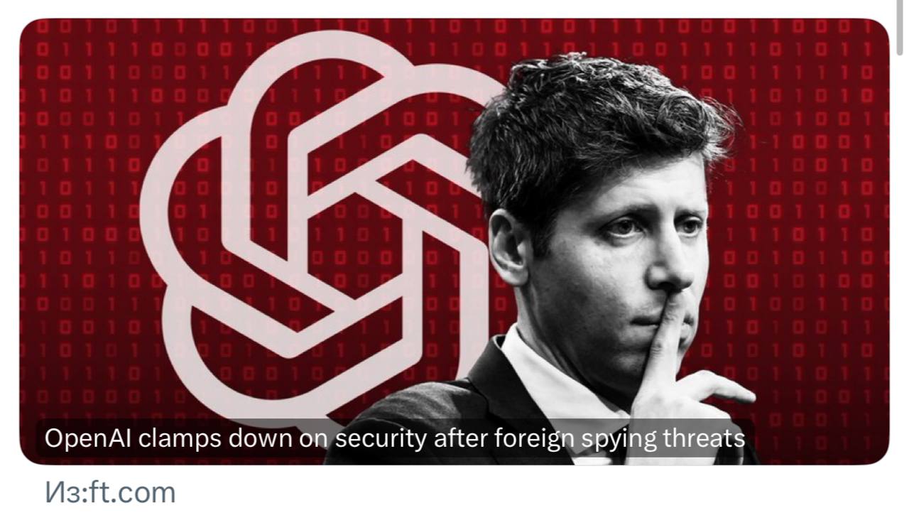 После выхода R1 от DeepSeek Альтман решил усилить контроль за безопасностью внутри компании. Напоминаю, что представители OpenAI утверждали, что китайцы обучили свою модель с помощью методов дистилляции из их моделей.
